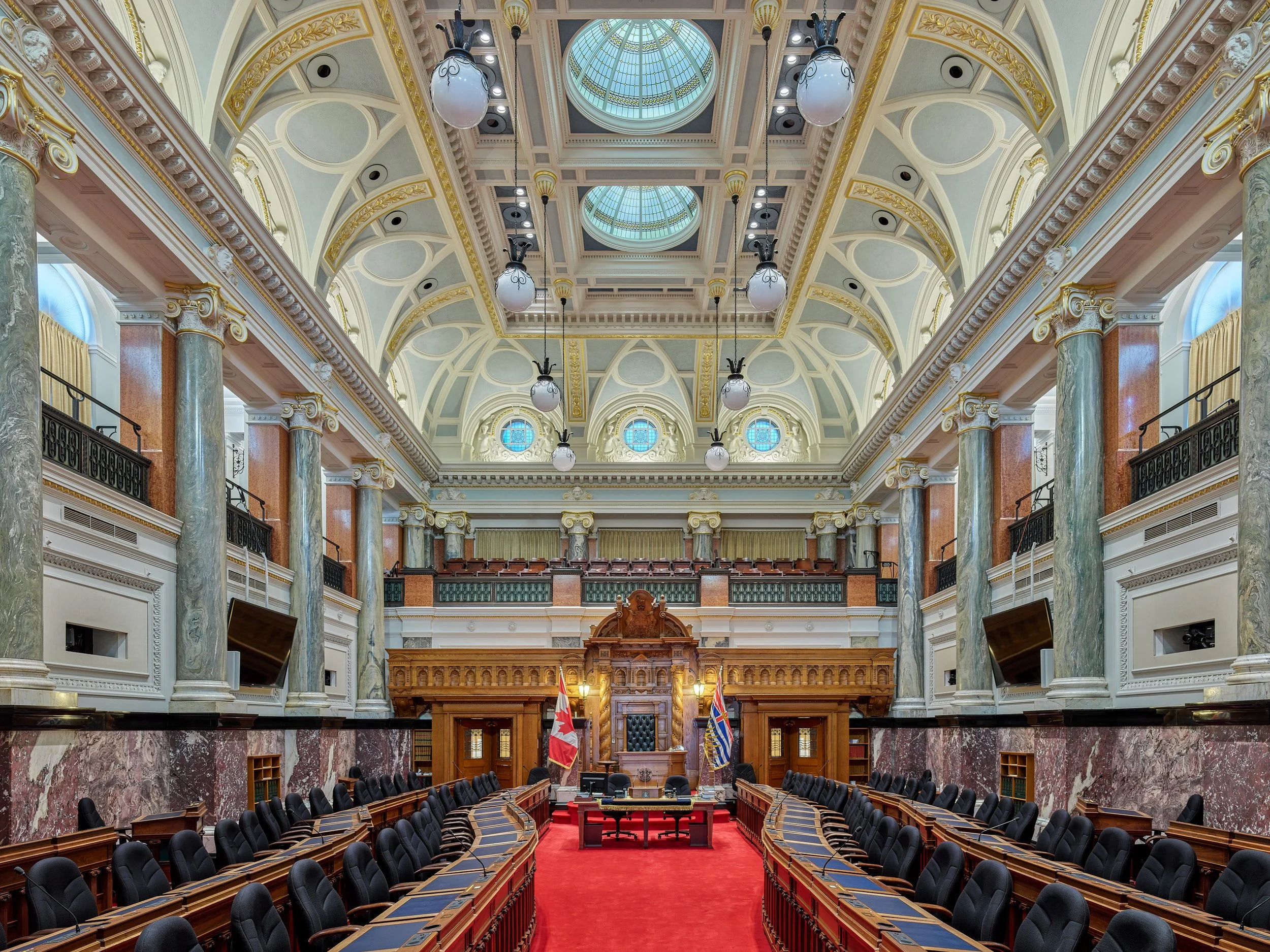 The Legislative Chamber of British Columbia’s 1970’s lighting system consisted of halogen and fluorescent fixtures. AES Lighting was presented with an opportunity for complex and creative problem solving to successfully decrease utility costs, improve flexibility, and maintain the heritage architecture while adhering to strict energy codes.