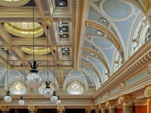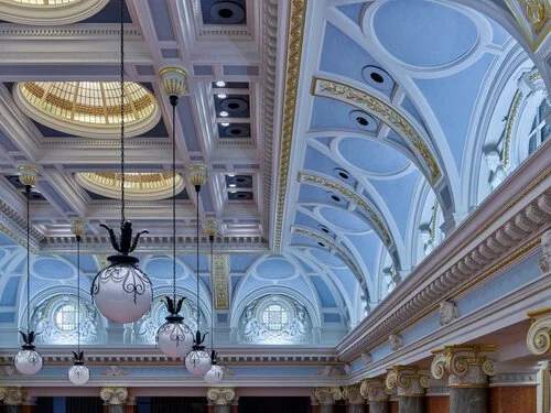 Due to the heritage aspect of the building, fixture positions could not be altered in any way. Product selection and performance specifications were critical to maximizing the functionality and aesthetics of the space. False skylights backed by the unilluminated attic space required significant care to create uniform lighting that mimicked natural daylight using the automated colour-tuning system. Dome light fixtures were connected to a colour and intensity sampling sensor placed on the building’s exterior to automatically adjust the fixtures’ colour temperature to match the exterior light’s colour temperature. Lighting controls that once had to be manually adjusted now have the capability to automatically turn on, dim, turn off, or white tune, which saves energy, time, and resources. The control system’s multiple zones highlight architectural features and allow maximum flexibility.