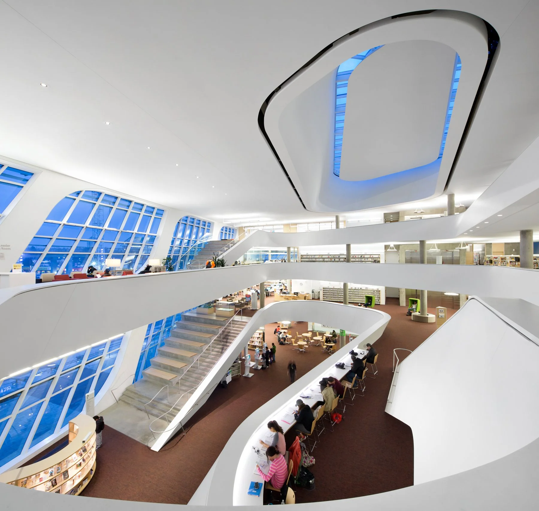 As the main branch for the City of Surrey, the state-of-the art Surrey City Centre library is a place for the community to learn, share and connect. The design features a winding central atrium, skylights and large windows that provide abundant natural light, and a connection to the surrounding community.